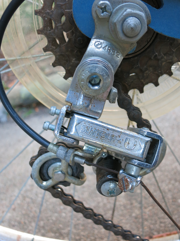 Originally I was planning on making a simple geared bike – probably just a single chainring in the front, and maybe a 3-speed in the back. Apparently these are really hard to come by these days, and especially if you want to have indexed shifters. My plan quickly unraveled as a discovered indexed shifters require a minimum of 6 or 7 gears in the back to function. In order to get that many cogs in the back I had two options: a) get a new style wheel with a 7 speed cassette, or b) try to locate a 7 speed freewheel. This was already getting harder than I wanted. Making things worse, newer bikes have a wider distance between the rear dropouts (where the rear wheel’s axle fits into the bike frame) to accommodate all the gears bikes have these days. This meant if I was going to use a 7-speed anything, I’d probably have to stretch-widen the frame. Hey that sounds like the fun! Yeah, no. It’s done often I’m told, but I wasn’t going to try it – not yet.