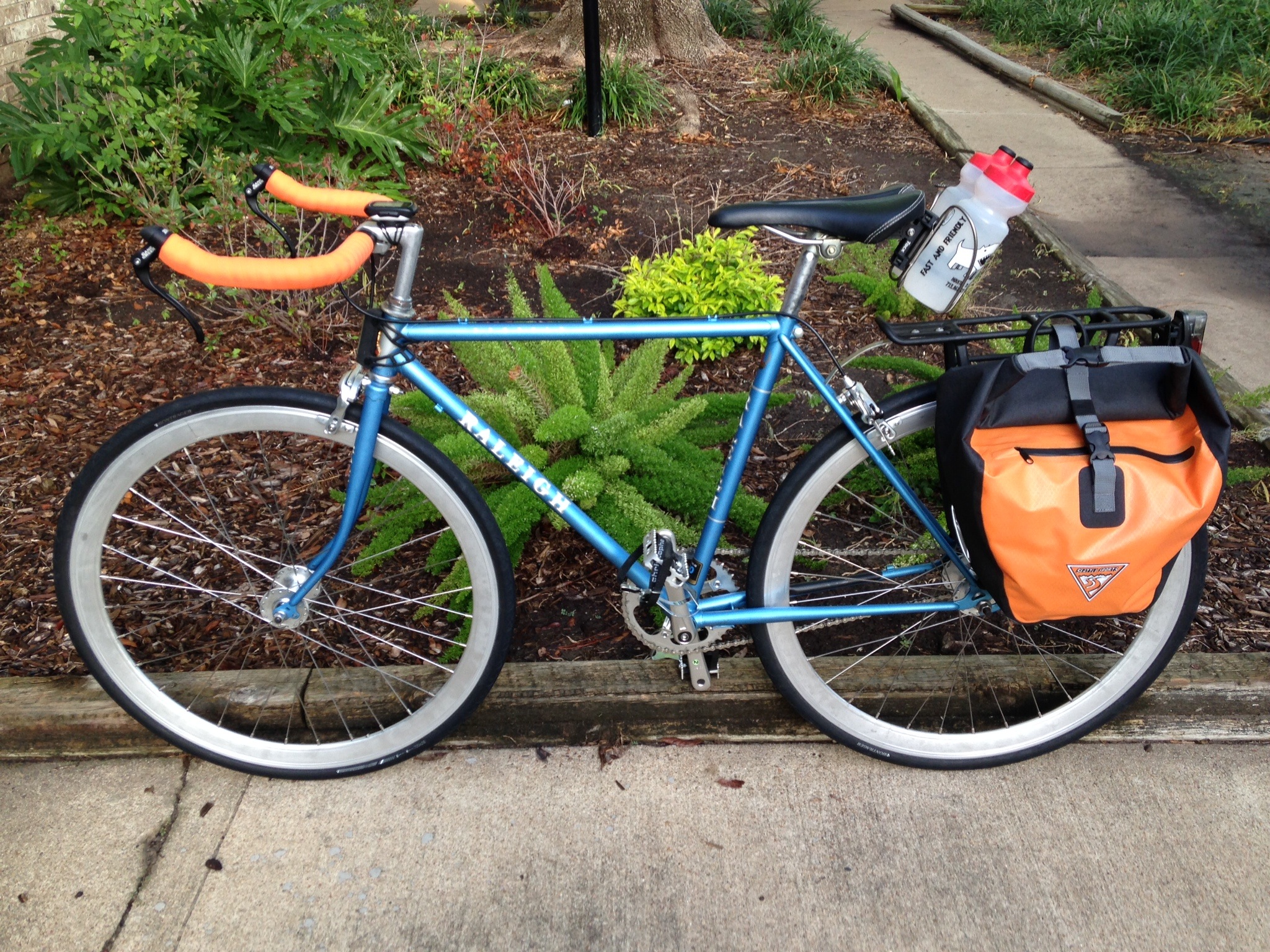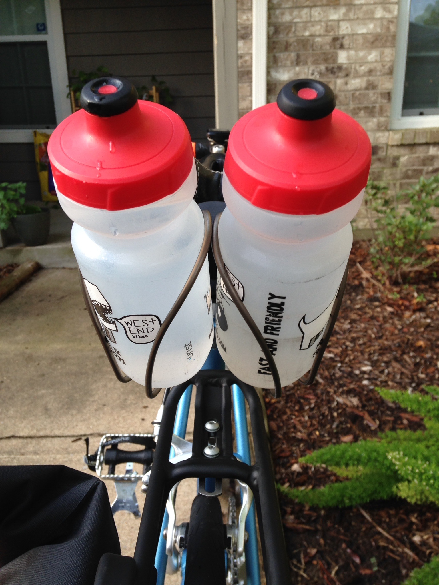 Remember that really sexy Raleigh I rebuilt for commuting? Well it doesn’t have eyelets on the down tube for a water bottle cage. Whether this is because it’s14397104957_df4ebf3cf0_c too old, or because it was a bottle of the barrel bike in the early 80’s I don’t know. But the fact remains the frame has no mounts for bottle cages. This becomes a problem when you’re riding daily in Houston, Texas, and at 7:30am it’s already 78 degrees out. Today I rode home in a 105 degree heat index. So, yeah, water bottles.