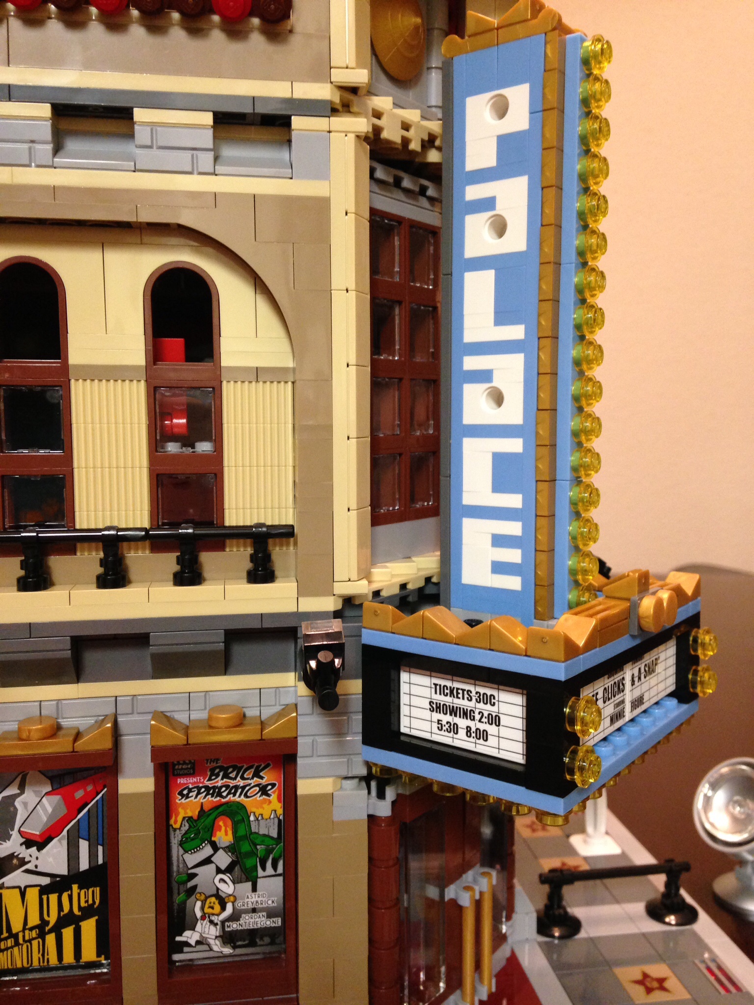 Finally got around to putting together the Palace Cinema like I said I was going to do about three weeks ago. I found this build to be more fun than the Town Hall. I found the Town Hall to be quite tedious for not a lot of payoff in terms of cool features (not saying it’s not a great set), but the Palace Cinema was definitely a better experience.