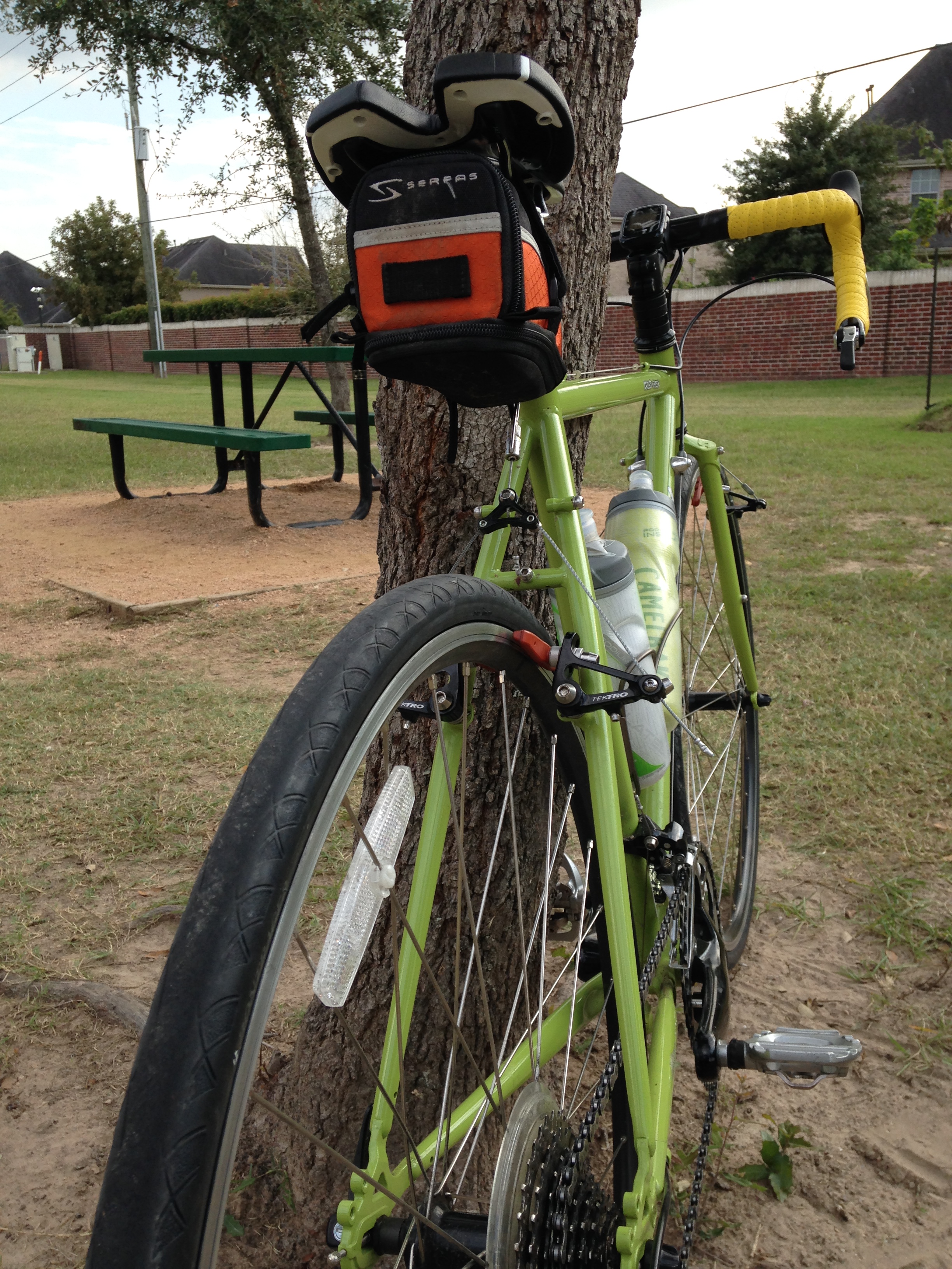 I also swapped out tires. I had been riding the 700×34 Ritcheys with knobbies that came on the bike (as seen in all my previous photos). But I’ve enjoyed riding on the Bontrager AW-2 700×28 folding tires that are on my commuter bike, so I picked up another pair and put them on Sherman. They are lighter, and ride super smooth. The down side is when the road is not super smooth; because they run with higher pressure my ass feels all those bumps a lot more. Might be time to invest in a carbon fiber seat post!