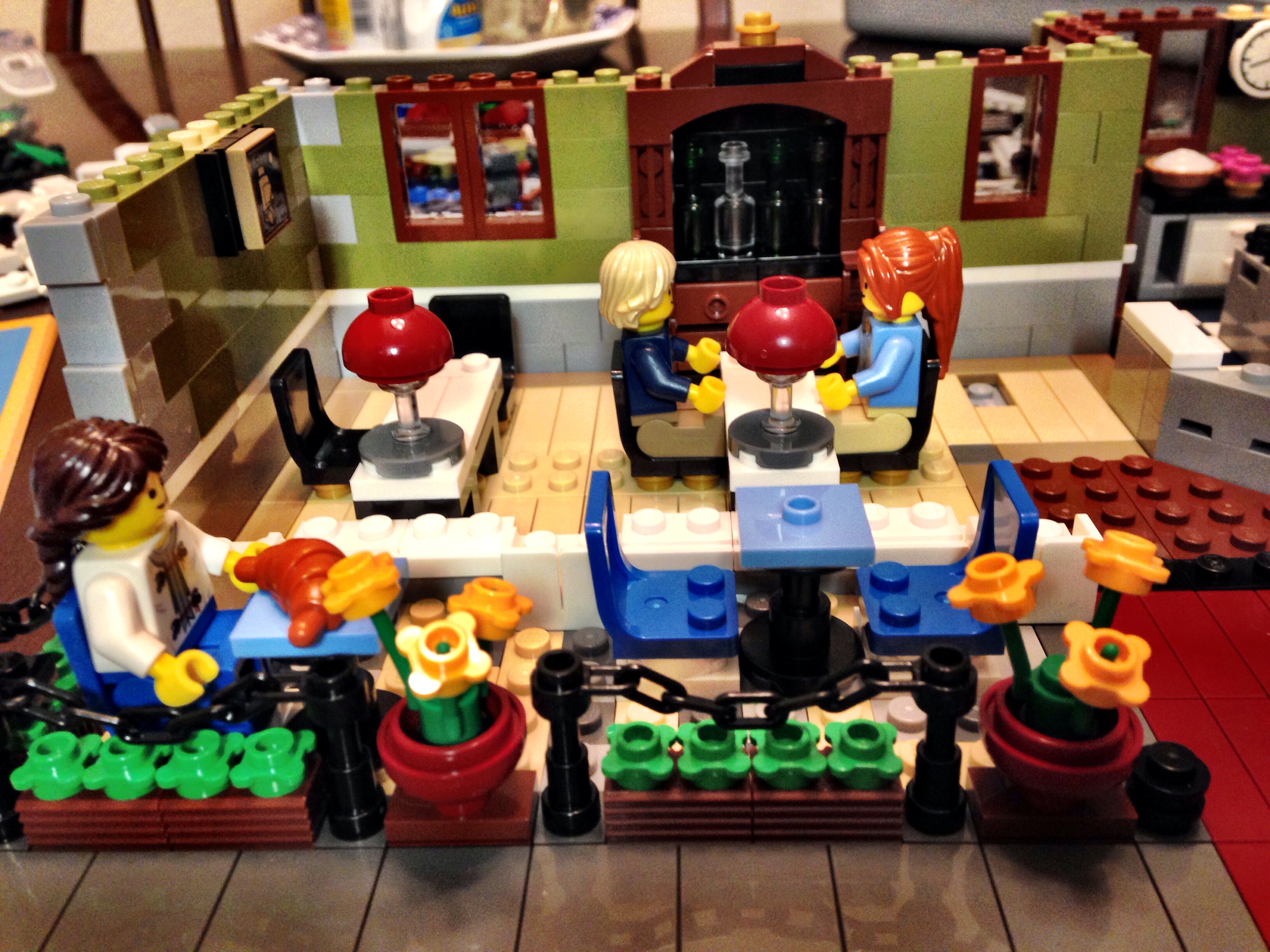 Complete! I didn’t get a separate pic of the side balcony dining area, but it’s small and a nice touch to the outdoor seating of the restaurant. Unless it belongs to the 2nd floor apartment. Hard to say, I haven’t seen the building’s deed. LEGO left that out.