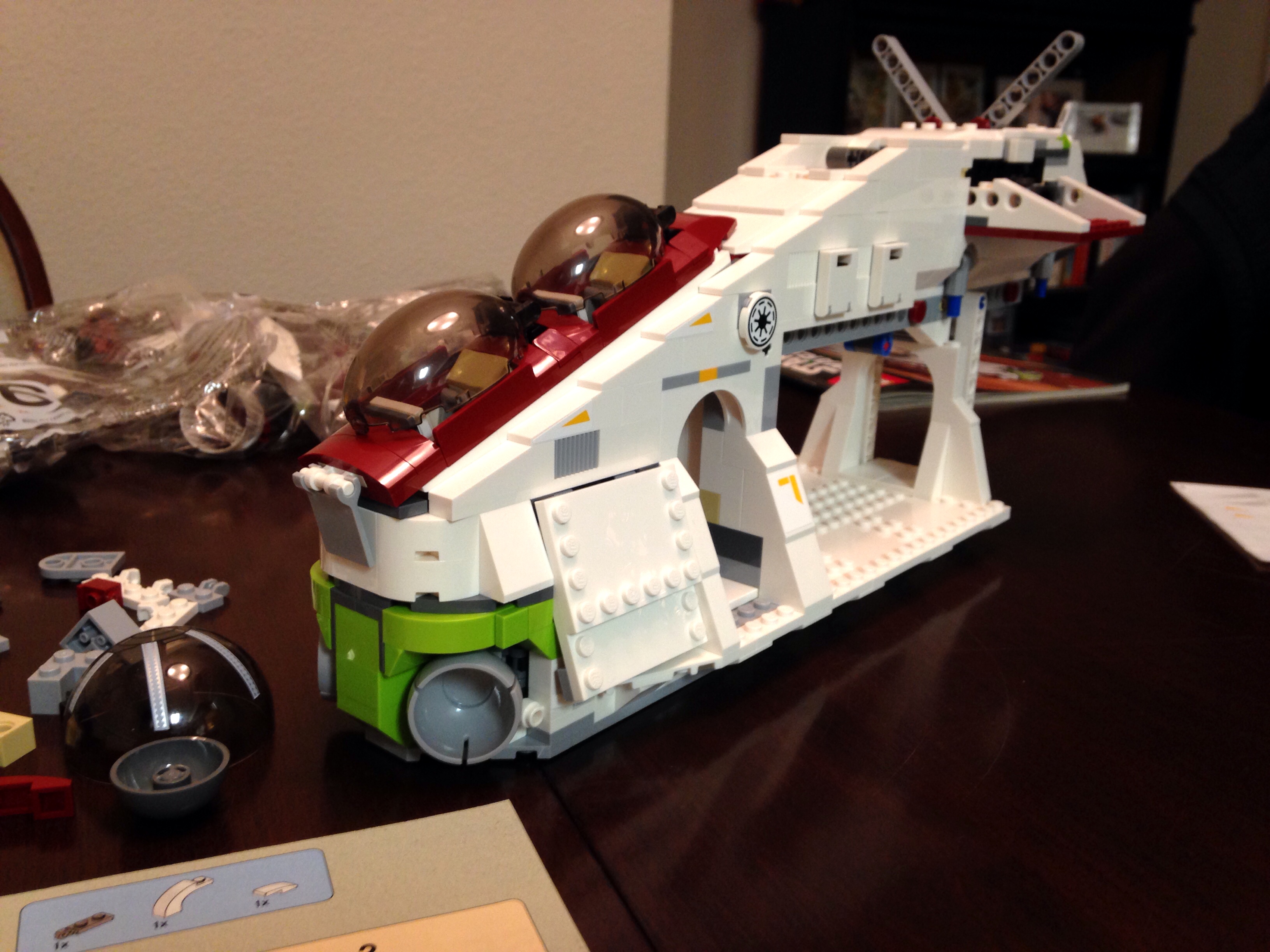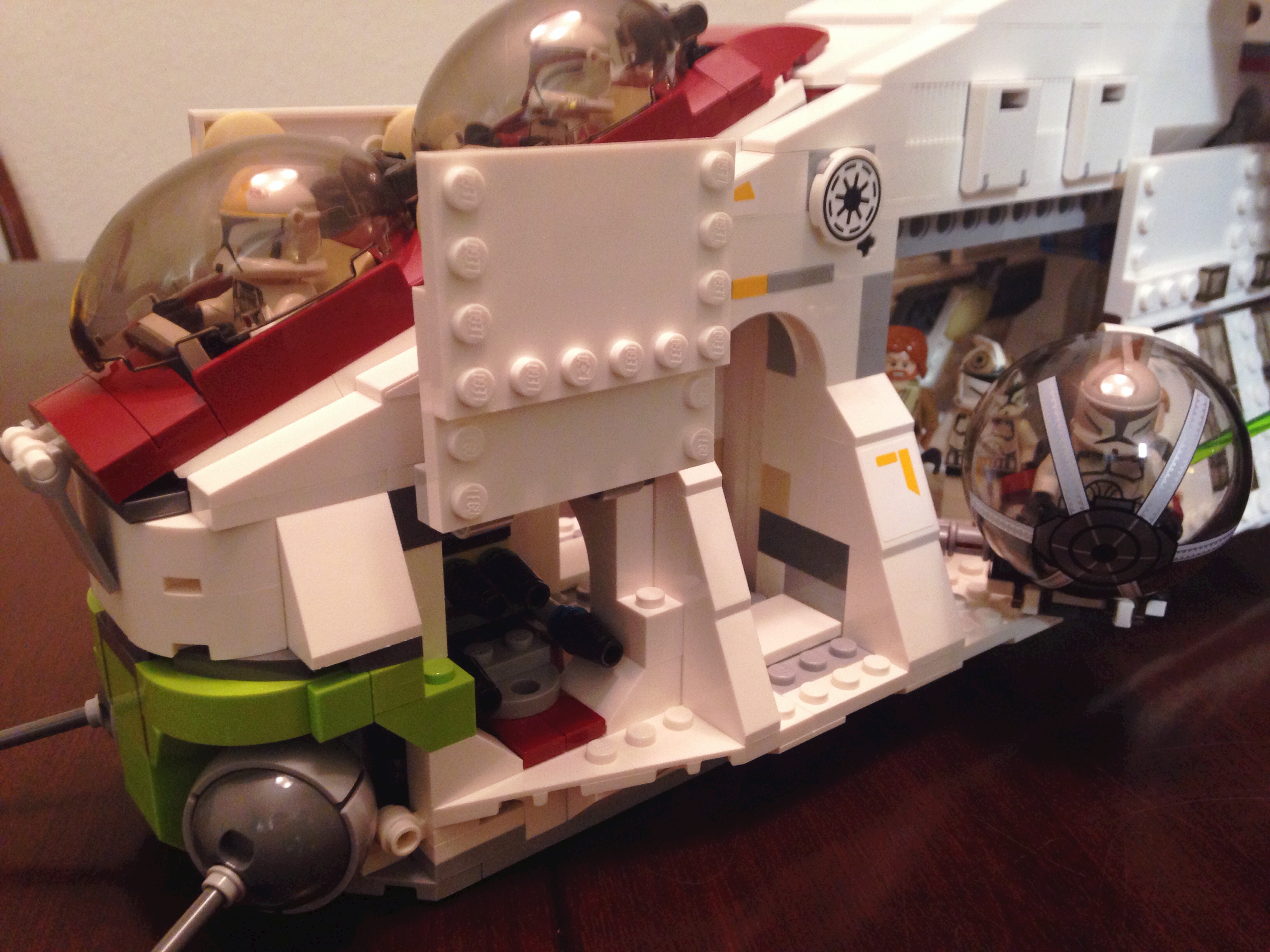 This is the third Republic Gunship LEGO has released, but I think it’s also probably their best. There are two features missing that would have made it perfect, but I’ll get to those later. Overall, the build is very impressive. I’m glad I’m at a point where I can build the larger sets that make incredible decorative pieces. This one turned out to be a little larger than I was expecting – but I’m OK with that. Being able to have a good sized model of something you love, and have that model made of LEGO, is just really frickin’ cool.