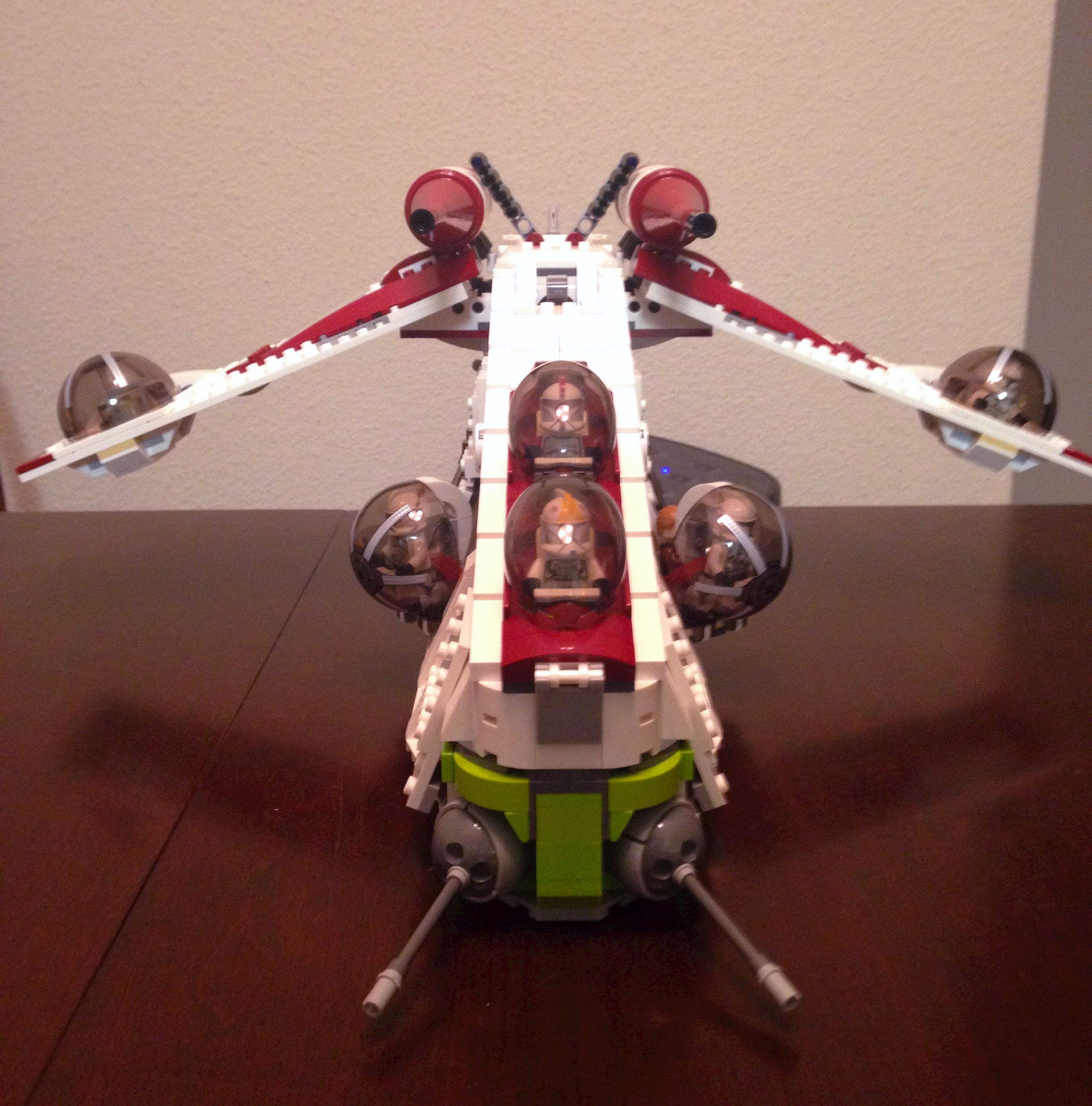 So that’s about it. There isn’t much else to say about the set. It took about 3 hours to assemble – again, while I was watching TV, so a less distracted person could easily do it in 2 I bet. It looks fantastic and is a pretty spitting image of the gunships in the movie and the show. It’s definitely playable, but as I said it also makes a great decorative piece of memorabilia on the shelf. Currently, mine is sitting on top of the bookshelf in my office. Looks great.
