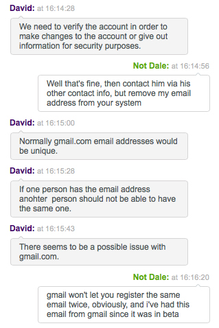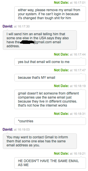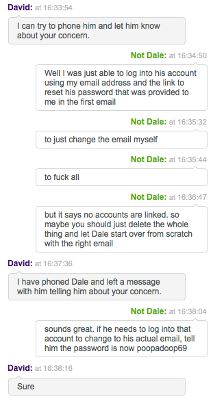 This is what happened (I’m using the handle ‘Not Dale’). This isn’t the whole conversation, but the most important parts.