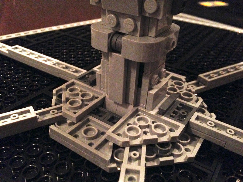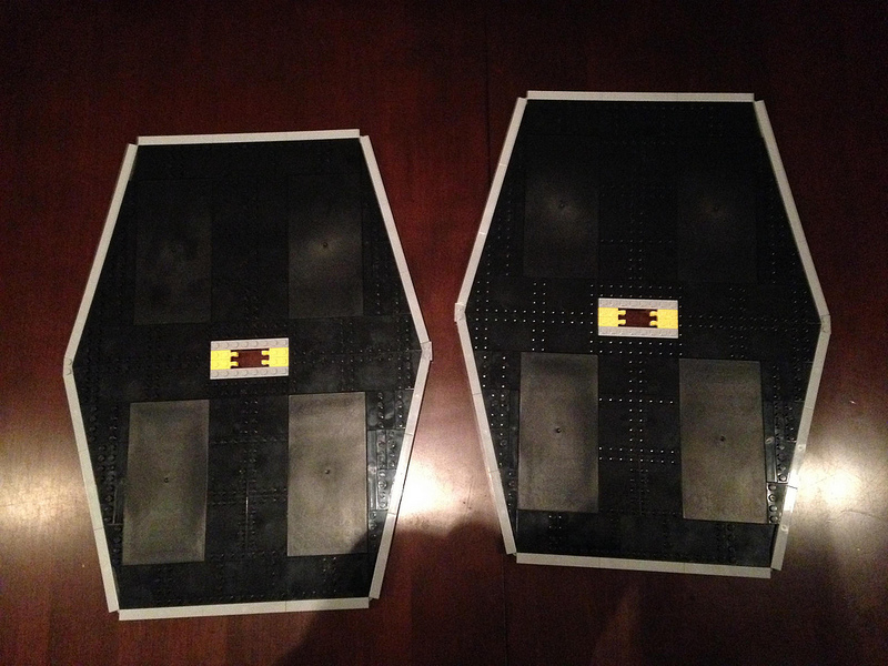 After the outer panels were constructed I was curious how they were going to securely connect. Needless to say I wasn’t disappointed. The arms from the main cockpit body slid nicely into the opening on the inside of the panel, and locked into some bricks. To further secure, there were two flaps that swung up and also locked in place to the body’s frame. Overall, the connection feels very solid.