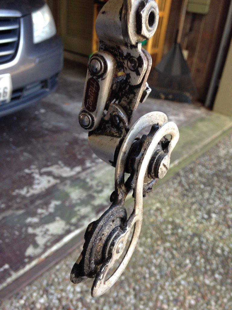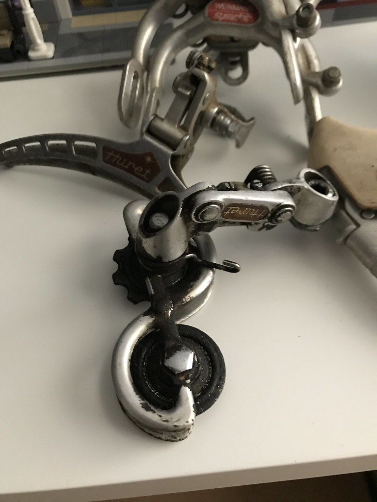 As I learned more about the bike and why it was such a lucky find – I came to find the major components are what so many people coveted. Specifically the rear derailleur: a French made Huret Jubilee. Apparently, it [still is] one of the lightest derailleurs ever made. Not to mention it’s simplistic design was groundbreaking at the time – and even today. I’d have to agree with that conclusion – it’s a beautiful piece of tech.