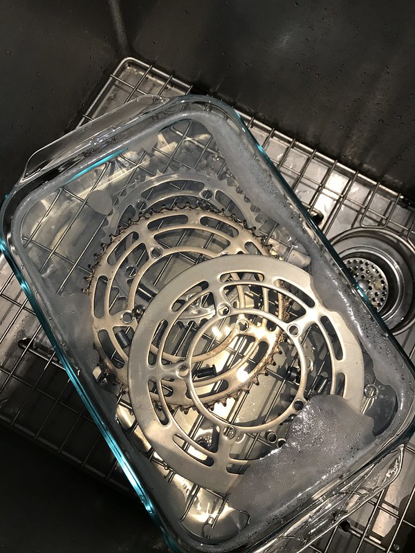 Everything was dirty, so I knew I’d have to clean the entire bike from top to bottom, along with all the parts. So it was time to break it down, see what condition the components were really in, and get to cleaning. I had to ask around to see what the best way was to clean rust off the chrome fork/stays, and specks all around the frame. It took a mix of using some Nevr-Dull metal polish, and some good old fashioned white vinegar rubbed on with aluminum foil (yes it works). Check out the slideshow below for a bunch of “before” pics during disassembly. The “after” pics will come shortly…