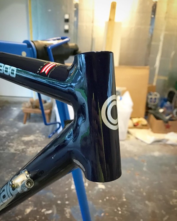 I certainly wasn’t in the market for a brand new Cinelli – or any new bike/frame to be honest. So I started trolling craigslist, eBay, and FaceBook Marketplace to see what I could find. After about 4 or 5 weeks I came across a Cannondale frame in a nice color that looks like it could fit the bill – at least close to something I had in mind. After a little haggling I came home with it ready to strip it down, take stock of what was good to reuse & begin to plan out what I needed to rebuild it to suit my vision.