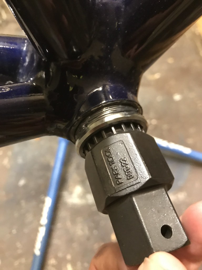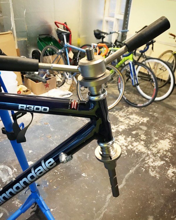 I borrowed my buddy’s headset bearing cup press to install the new headset, which I had to do before anything else could happen. It was surprisingly simple, but can be understandably more difficult without a cup press – and this particular one costs almost $200. There is a cheaper one, but it’s not as fully featured. I’ll admit I watched a few videos on YouTube and read the Park Tool page about 4 times before giving it a go but in the end it was so damn easy.