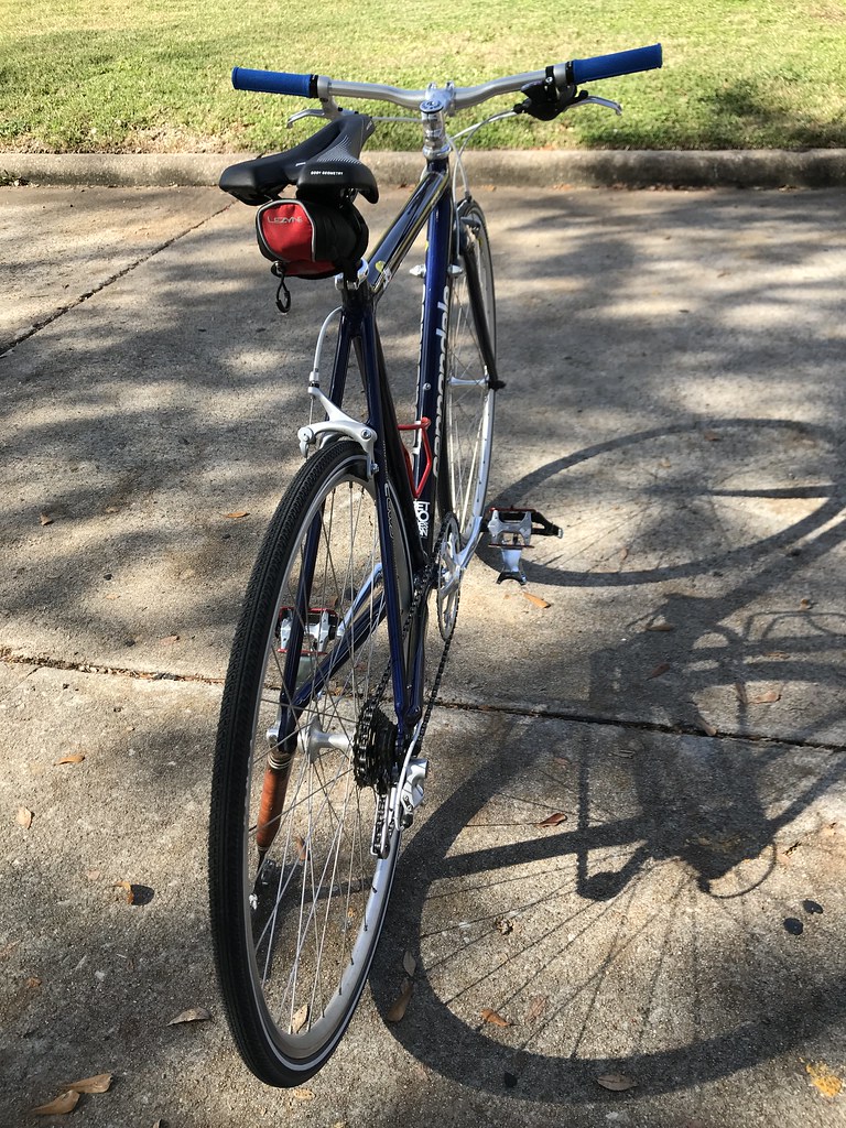 That’s pretty much it. The wheels, cassette, and rear derailleur were thoroughly cleaned up to look basically new. My buddy trued the wheels for me. I ordered a set of Kenda Kwik Trax tires in 700×28, and a Specialized Milano saddle and was basically done!