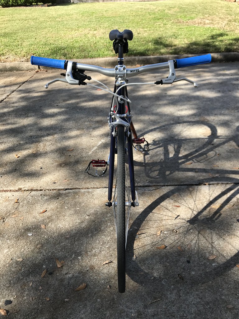 To finish the cockpit off I picked up a Ritchey Classic C220 stem in an 80mm reach (I’m short), and my favorite new piece; Nitto For Shred handlebars with a very wide 650mm wingspan (they actually come 750mm standard).