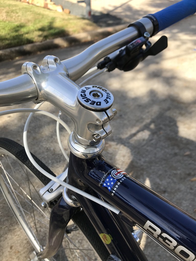 The bike having a classic threaded headset meant that most of the time it would be paired with a traditional quill-style stem and bar clamp. But as I mentioned I wanted to give it the more modern look so I picked up a threaded-to-threadless stem adapter from Profile Design. This let’s you attach a modern 1 1/8″ threadless 31.8mm front-loading bar stem and opens up a lot more option for handlebar choice as well.