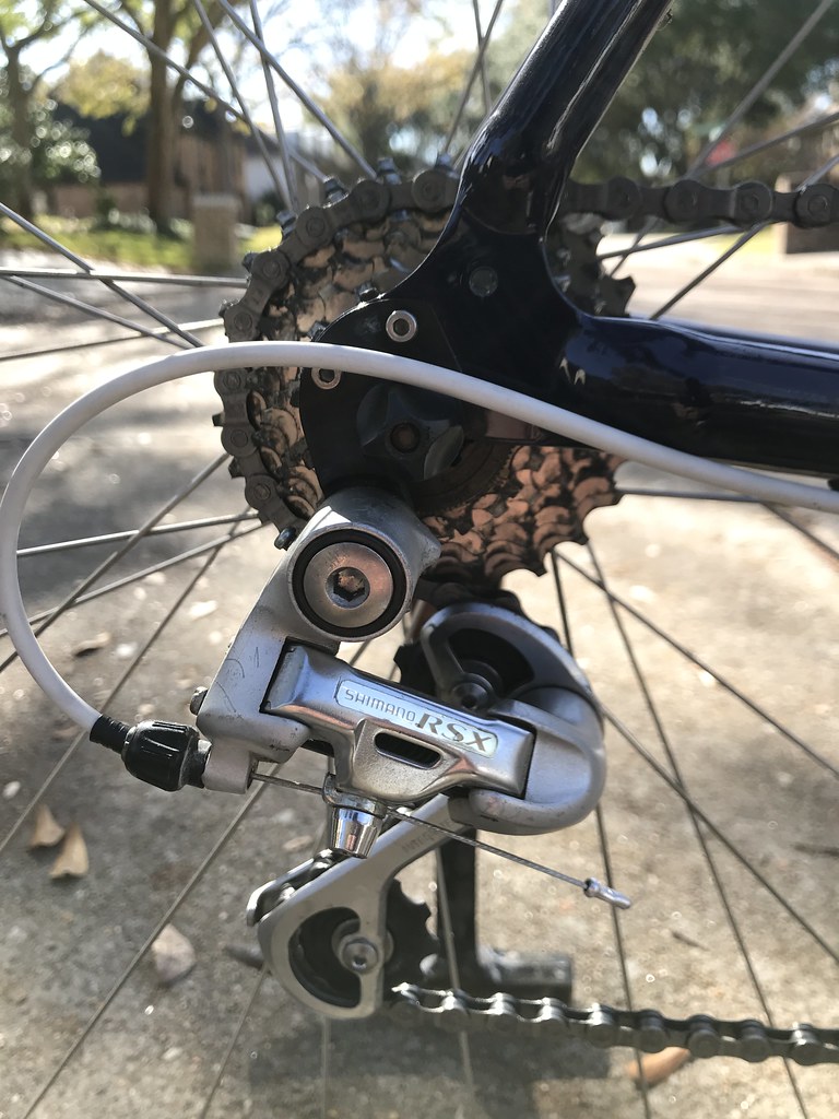 Lastly, the RSX cassette required an 8-speed shifter. I didn’t want to use a friction shifter, or an indexed thumbie; I wanted a trigger shifter for quick, easy shifting. I had to go to Amazon to find this part since 8-speeds aren’t typical anymore so finding NOS is really you’re only choice. I went with a Shimano Altus SL-M310 rapidfire shifter. Check it in the 2 pics above.
