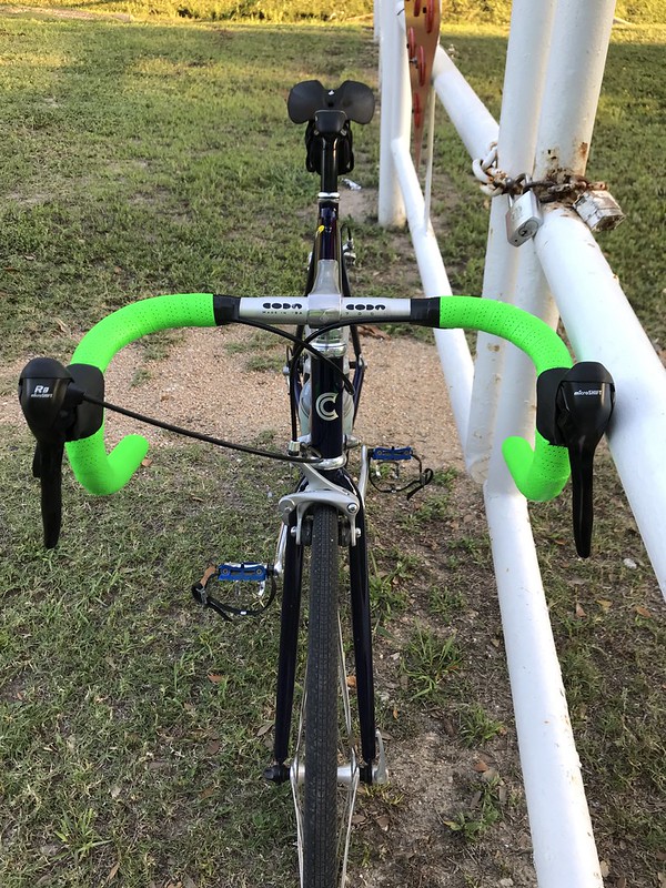 Here’s what it looks like now. I took it for a shakedown ride last night and it felt good. The reach to the hoods was a little far, but I built it for whoever buys it – not me. Most people are taller than me, so…